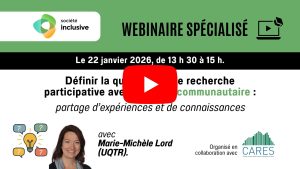 Ce webinaire s’inscrit dans une série d’événements visant à promouvoir et outiller les équipes de recherche participative dans le domaine du handicap.